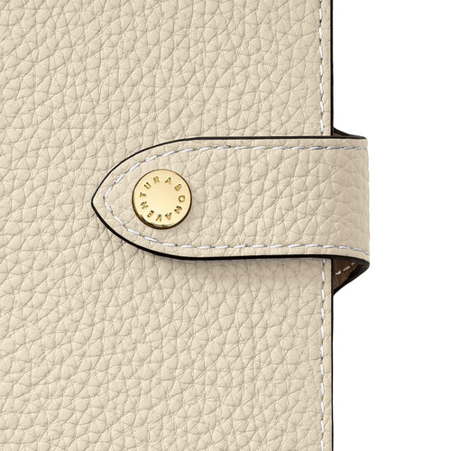柔らかな手触りと美しいシボ感が魅力のレザー。キズや汚れが目立ちにくく、日常使いにも最適です。 -