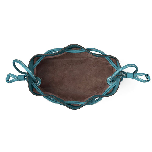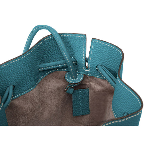 - A 2-way bag with a short strap that can be used as a drawstring bag and a shoulder strap that can be worn over the shoulder or across the body.