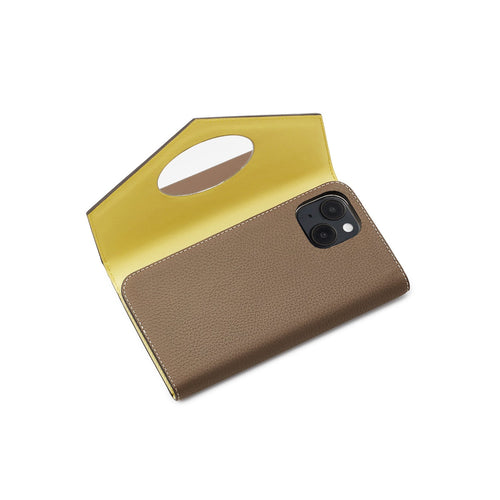 (iPhone 14) Mirror Case Shoulder Strap With Shrink Leather