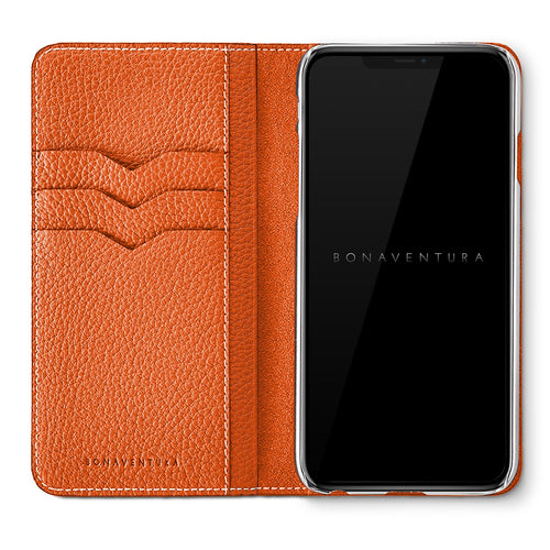 SKU: BODT13-NAOR - Specifications: Genuine leather notebook type smartphone case, card pocket (horizontal x 3, vertical x 2)