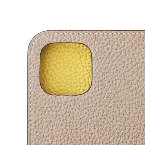 SKU: BODT14-GGYE - Specifications: Genuine leather notebook type smartphone case, card pocket (horizontal x 3, vertical x 2)