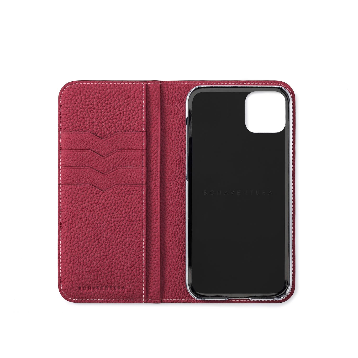 SKU: BODT14PL-RD - Specifications: Genuine leather notebook type smartphone case, card pocket (horizontal x 4, vertical x 2)