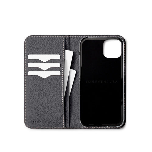 SKU: BODT15-CG - Specifications: Genuine leather notebook type smartphone case, card pocket (horizontal x 3, vertical x 2)