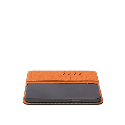 SKU: BODT15PM-OR - Specifications: Genuine leather notebook type smartphone case, card pocket (horizontal x 4, vertical x 2)