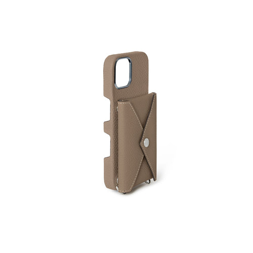 - Back-type iPhone case with snap for envelope pouch and mirror pouch (sold separately).