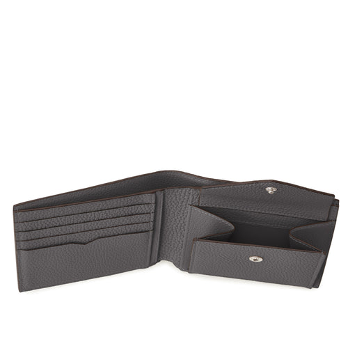 - A men's bi-fold wallet made of luxurious shrink leather.