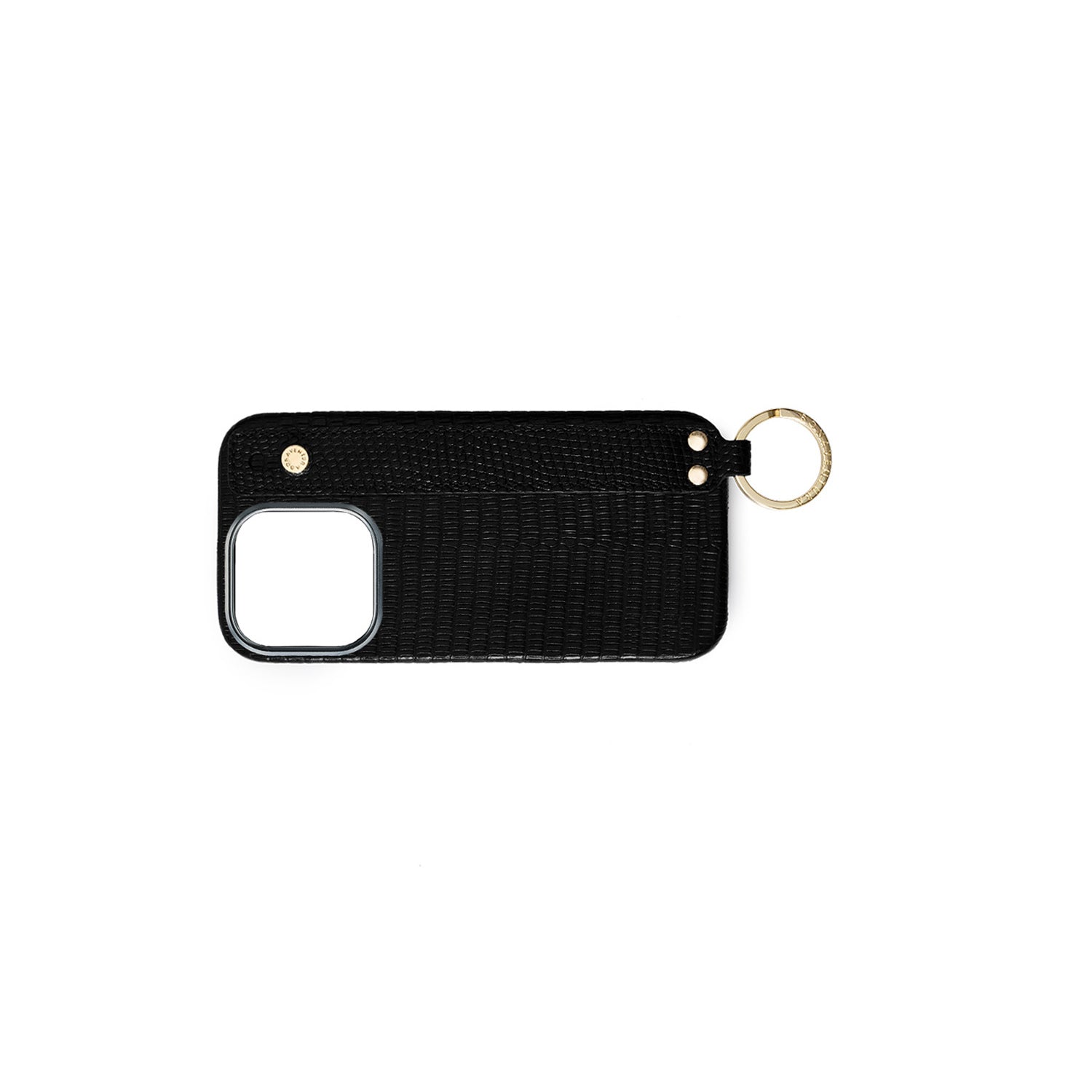(iPhone 15 Pro) ハンドル付き バックカバーケース リザードエンボスレザー (ゴールド)