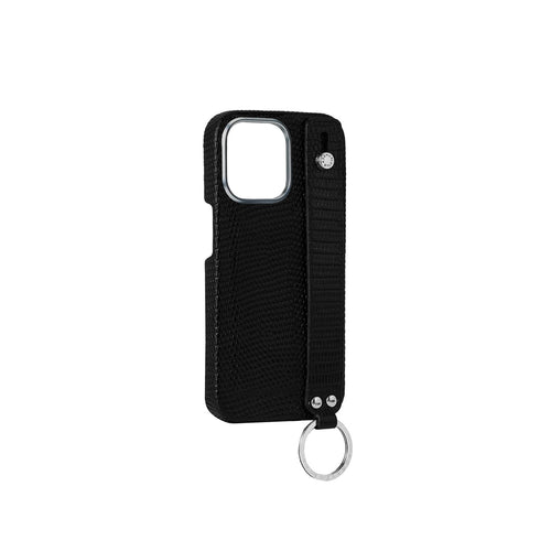 (iPhone 15 Pro) ハンドル付き バックカバーケース エンボスリザードレザー