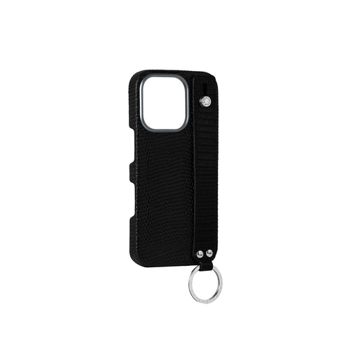 (iPhone 16 Pro) ハンドル付き バックカバーケース リザードエンボスレザー