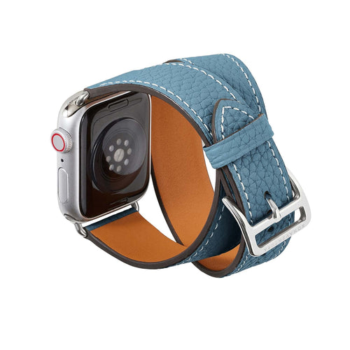 Bottalato Leather Double Tour Apple Watch Band 38/40/41mm (Silver Adapter)