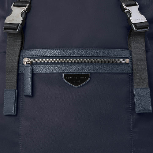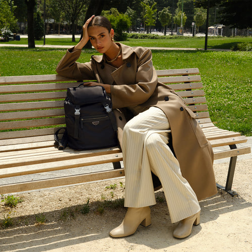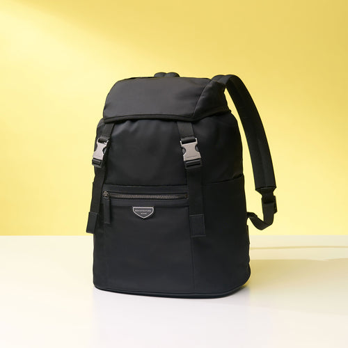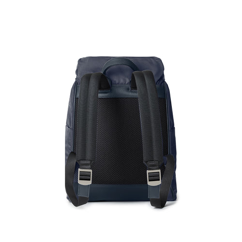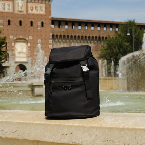 - イタリア製の高密度軽量ナイロンを使用し、しなやかで上品な光沢と高級感を演出するフラップバックパック。