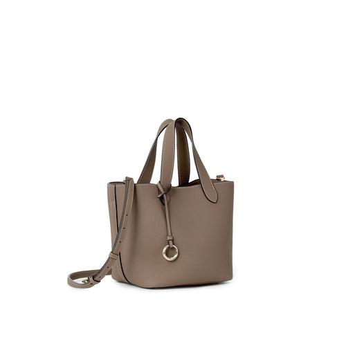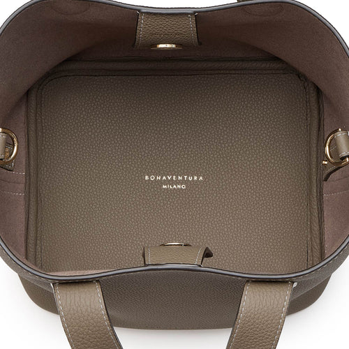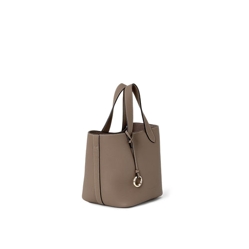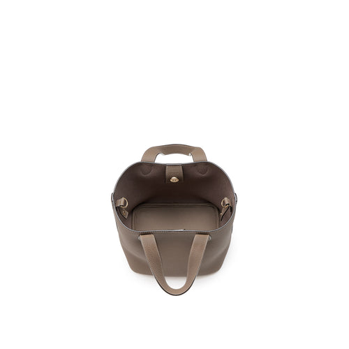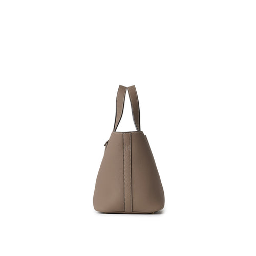 - 軽量で心地よいシュリンクレザーの風合いと、トレンドに左右されないシンプルなフォルムが特徴的なハンドバッグ。