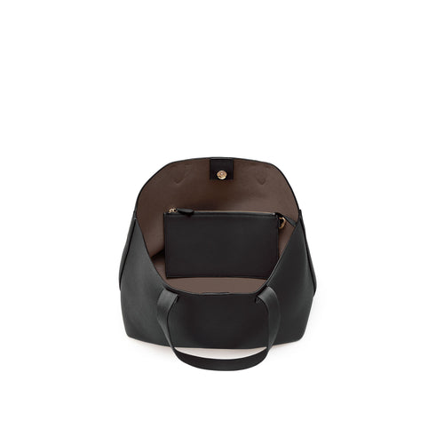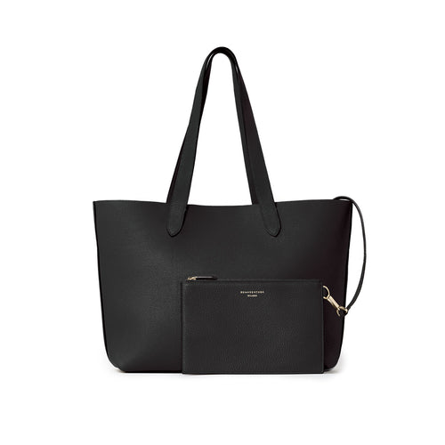 - 軽量で心地よいシュリンクレザーの風合いと、トレンドに左右されないシンプルなフォルムが特徴的なトートバッグ。
