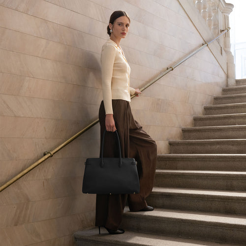 - 上質なシュリンクレザーを使用したシンプルで洗練されたデザインのトートバッグ。