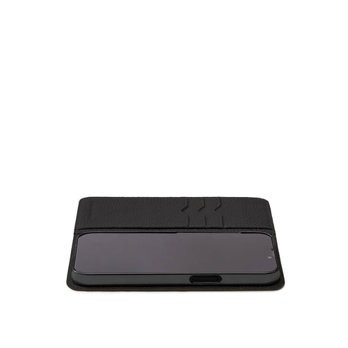 SKU: BODT15P-BK - 仕様:本革手帳型スマホケース、カードポケット(横×3、縦×2)