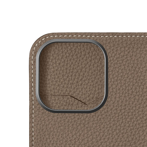- 美しいレザーを引き立てるミニマルなデザインのiPhoneケース。