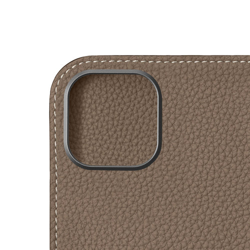 - 美しいレザーを引き立てるミニマルなデザインのiPhoneケース。