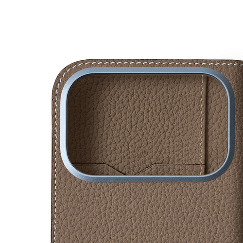 - 美しいレザーを引き立てるミニマルなデザインのiPhoneケース。