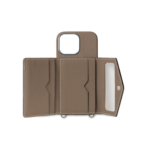 - 별매의 엔벨로프 파우치, 미러 파우치 전용의 스냅 첨부 배면형 iPhone 케이스.