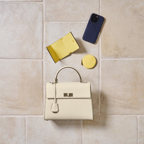 ボナベンチュラ待望のトップハンドルバッグ。滑らかなレザーの質感と、深みのある発色が上質な印象を与えます。 -