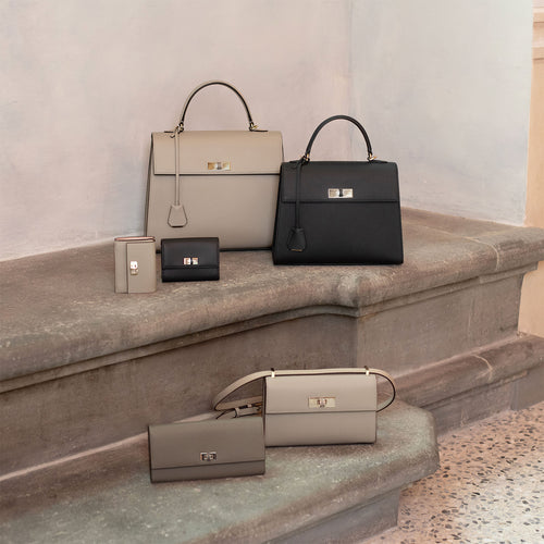 直線と曲線が織りなすデザインに、上品さと凛とした強さを映し出しました。素材には、"高貴"を意味する「ノービレレザー」を採用。
