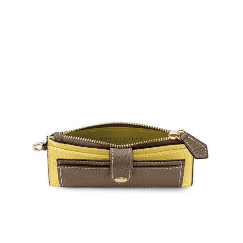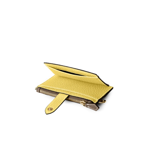 SKU: BWAT55-ETYE 幅(cm) 高さ(cm) マチ(cm) 重量(g) 12.3 8 1 53 - 素材:外側 シュリンクレザー、内側(スナップ内側)シュリンクレザー、(ジップ内側)スムースレザー