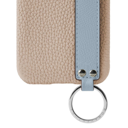 - 슈링크 레더와 노브레사 레더의 콤비네이션을 즐기는 핸들 첨부 백 커버 케이스.