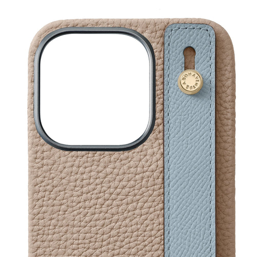 - ヨーロッパ最高級「シュリンクレザー」と「ノービレレザー」のコンビネーションを楽しむハンドル付きバックカバーケース。