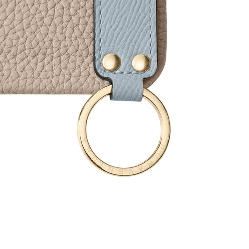 - ハンドルのリングは、別売りのショルダーストラップで斜め掛けができるほか、鍵やストラップ、キーチャームなどを取り付け、マルチに使用可能。