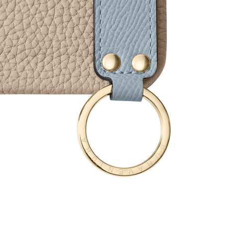 - ハンドルのリングは、別売りのショルダーストラップで斜め掛けができるほか、鍵やストラップ、キーチャームなどを取り付け、マルチに使用可能。