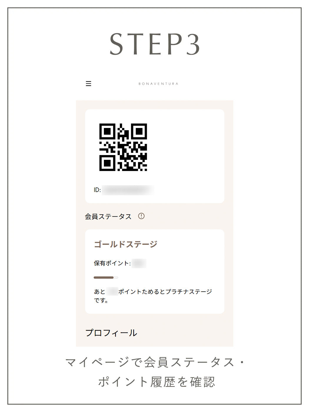 会員ステージに応じた特典とともに、BONAVENTURAでのショッピングをより一層お楽しみいただけますと幸いです。