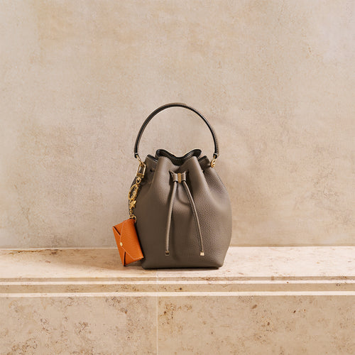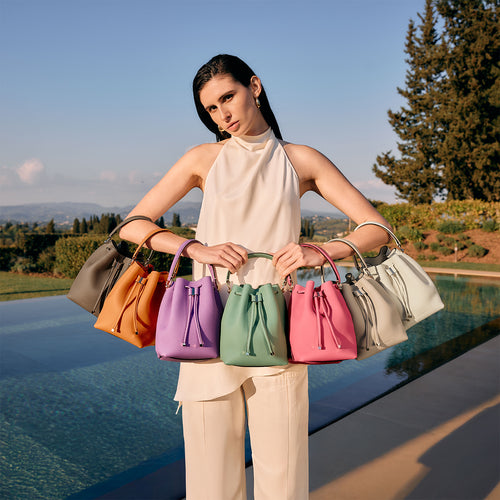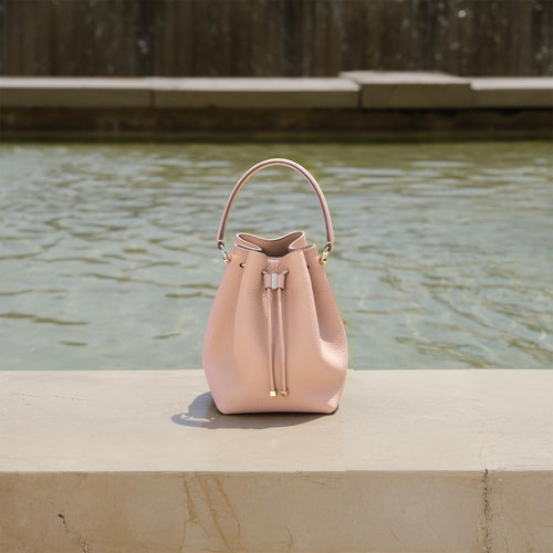 - 可愛らしさとエレガントな表情を兼ね備えたバケツバッグ。