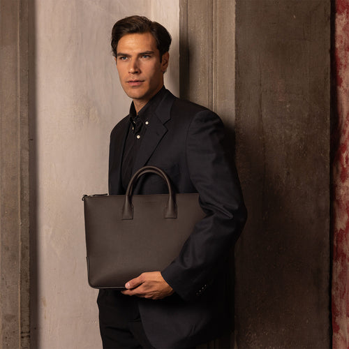 - 上質なシュリンクレザーを使用し、ソフトな印象ながらしっかりと自立する台形フォルムが特徴のブリーフバッグ。