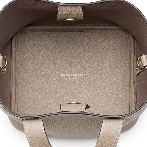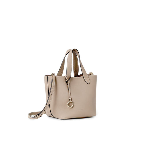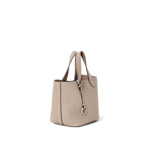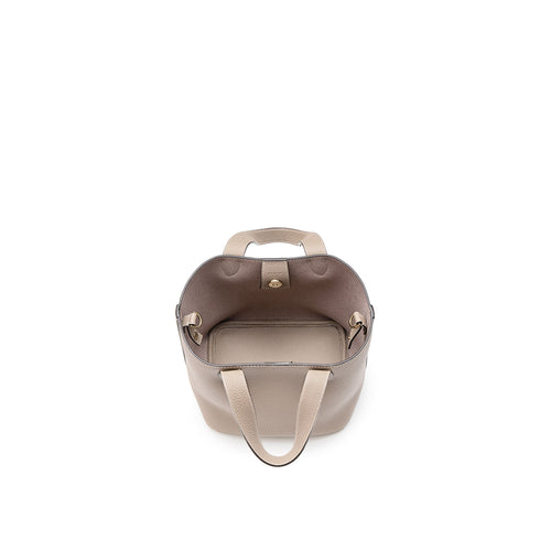 - 軽量で心地よいシュリンクレザーの風合いと、トレンドに左右されないシンプルなフォルムが特徴的なハンドバッグ。