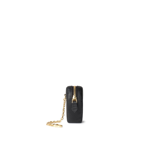 ハート ミニポーチ チェーン付き (エンボスリザードレザー)