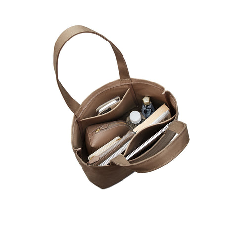 - 内側のポケットは大小2サイズ設計。小さい方はキーケース・パスケースなどの小物類をまとめて入れられ、大きい方にはパソコンやノートなどを綺麗に収納できます。