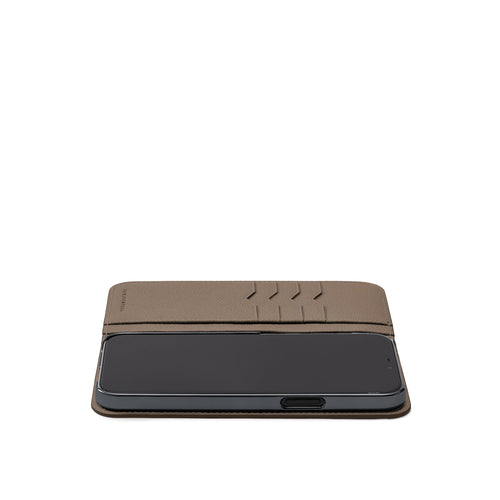 - 美しいレザーを引き立てるミニマルなデザインのiPhoneケース。