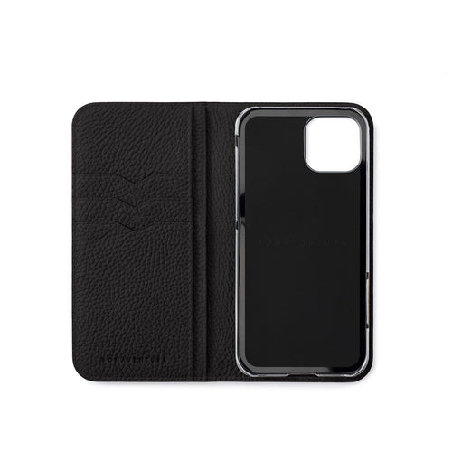 SKU: BODT16-BK - 仕様:本革手帳型スマホケース、カードポケット(横×3、縦×2)
