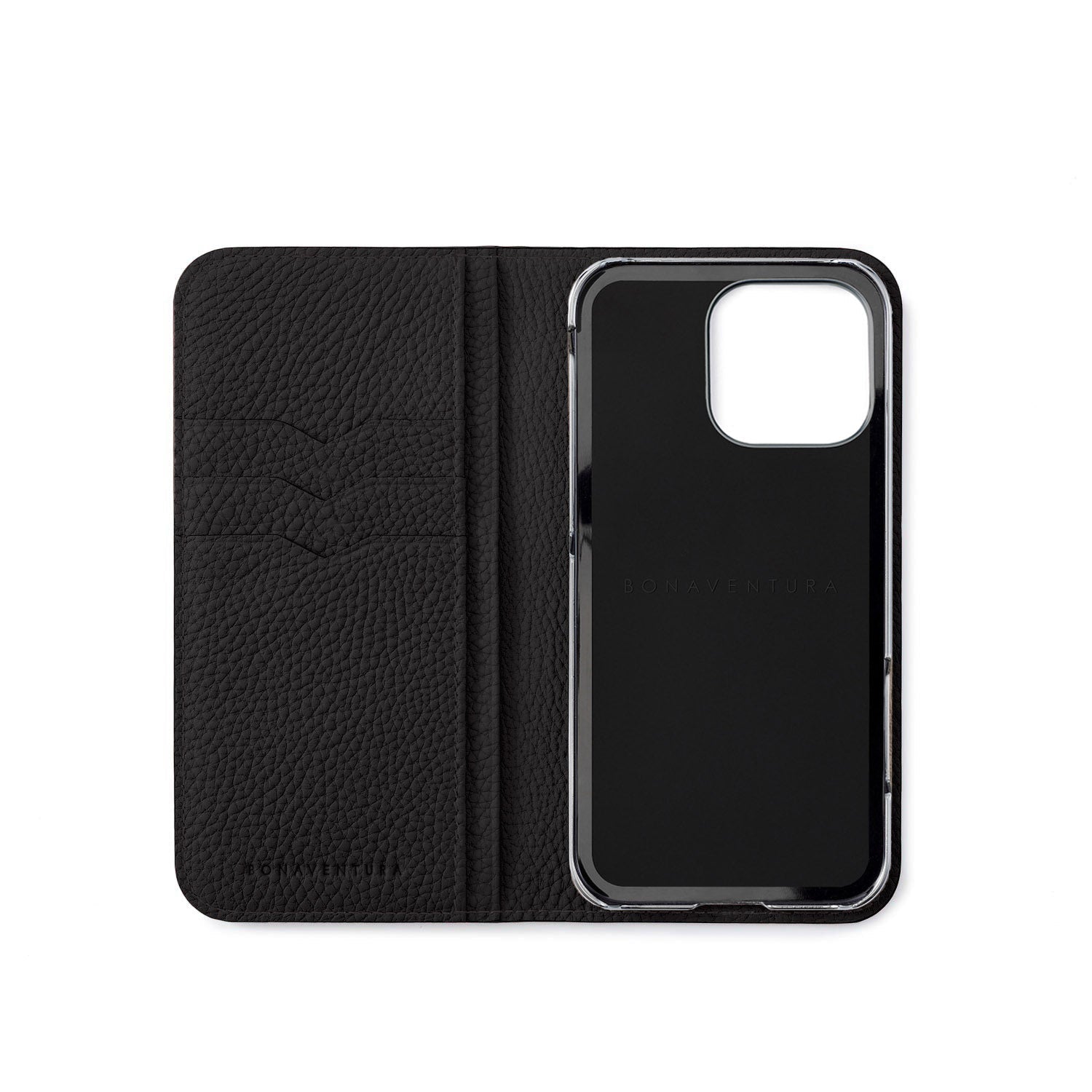 SKU: BODT16P-BK - 仕様:本革手帳型スマホケース、カードポケット(横×3、縦×2)