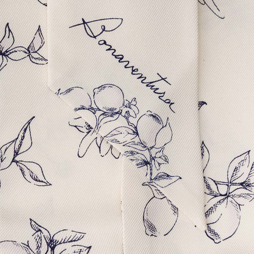 鳥とレモンの穏やかなイラストをモチーフにした、柔らかなニュアンスカラーが魅力のシルクリボンスカーフ。 - 人気イラストレーター山口奈津氏とともに描き上げたイラストを、伝統的な手捺染のスクリーンプリントで丁寧に表現しました。