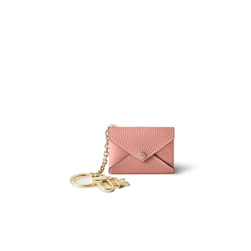 - シュリンクレザー製エンベロップ型の小物入れと星のチャームがついたキーホルダー。