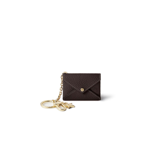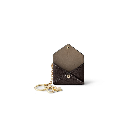 - シュリンクレザー製エンベロップ型の小物入れと星のチャームがついたキーホルダー。