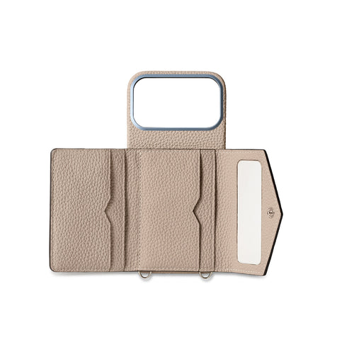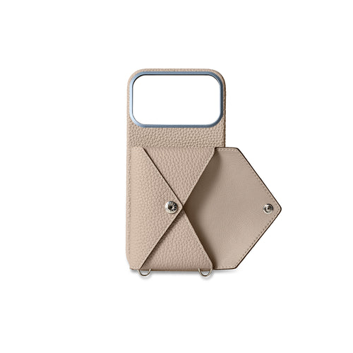 - 別売りのエンベロープポーチ、ミラーポーチ専用のスナップ付き背面型iPhoneケース。