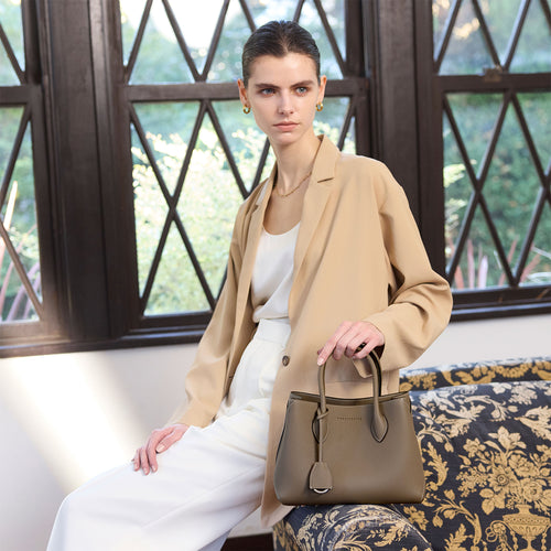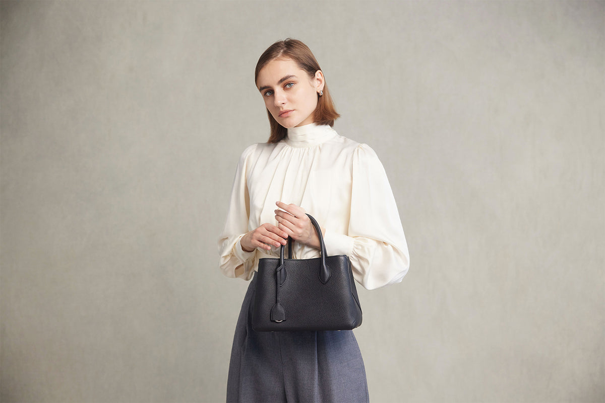 - ハンドバッグとショルダーバッグの2Way仕様。サイドのボタンの開閉で2タイプのシルエット。