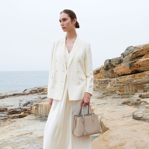 - ハンドバッグとショルダーバッグの2Way仕様。サイドのボタンの開閉で2タイプのシルエット。