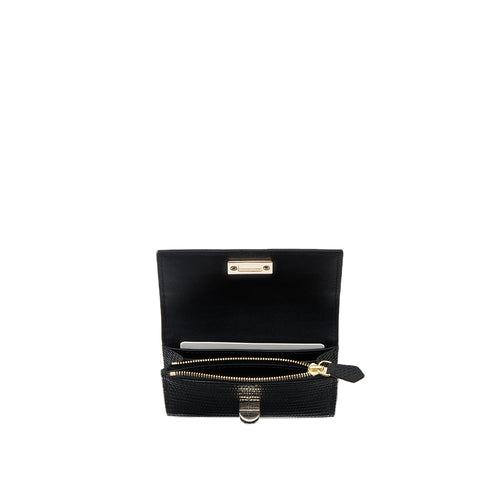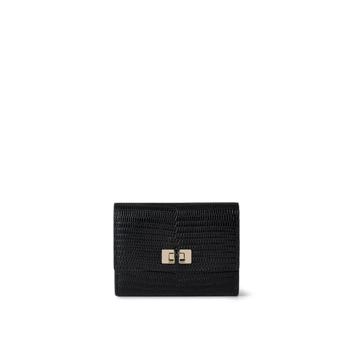 - 落ち着いた艶と美しい陰影が魅力のエンボスリザードレザーを贅沢に使用した、ミニマルで洗練されたコンパクトウォレット。