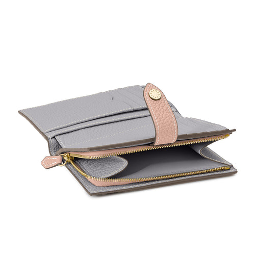 - ヨーロッパ最高級「シュリンクレザー」を使用したベルトスナップ付き2つ折りウォレット。