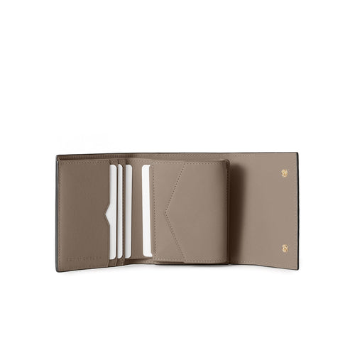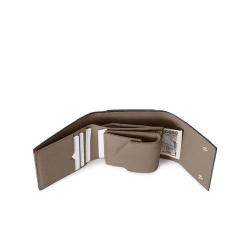 - スクエアフラップのクラシカルな印象ながら、お札の出し入れやマチ付きのコインケースが機能的でコンパクトなデザイン。