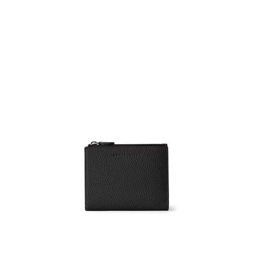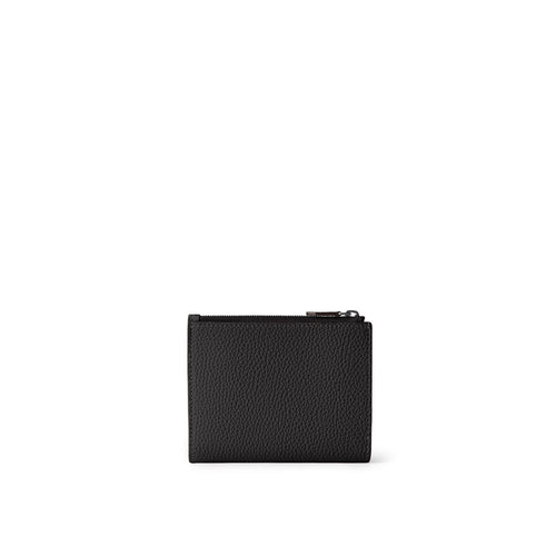 - 二つ折りでコンパクトながら、カード・お札・コインをしっかりと収納できる万能アイテム。