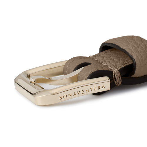 - イタリアで一つ一つ丁寧に仕立て上げられたスクエアバックルはクラシカルな印象でありながら、コーナーカットをラウンドに仕上げることでやわらかな印象に。